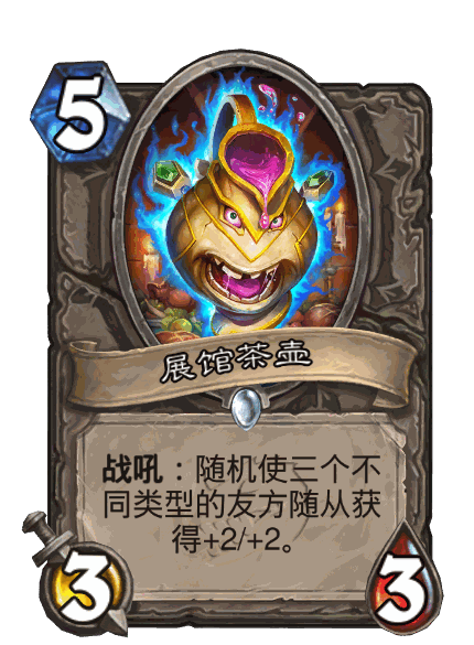 穆克拉:最优秀的3费随从,身材扎实,也是野兽。但由于卡组野兽很多,因此也有可能会影响茶壶的buff(虽然个人感觉一般能buff到2张就足够赢下很多对局了)。